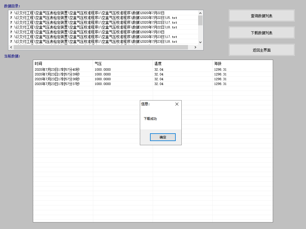 點擊: ”數據”,查看數據(jù)階段,不再更新大氣壓力數據