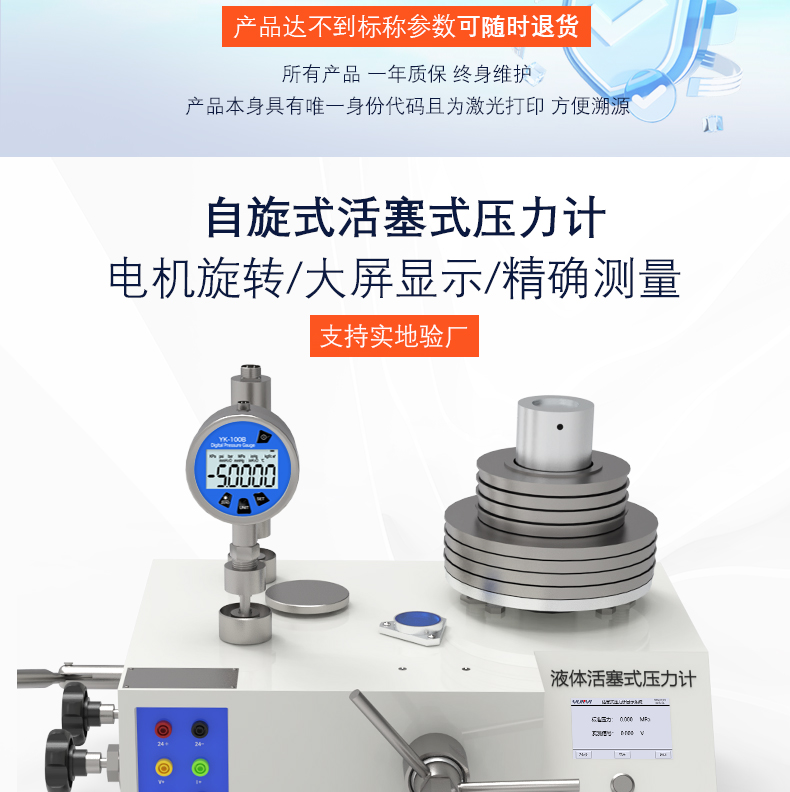 我公司最新研發的自旋(xuán)式活塞式壓力計通過(guò)電機帶動活塞係(xì)統旋轉,轉動平穩,靜音無 幹擾,避免了(le)因手動旋轉不平(píng)穩導致的活塞杆斷(duàn)裂問題 。內置(zhì)高精度過程信(xìn)號測量(liàng)功能,可 快速檢定壓力傳感器 、壓力(lì)變送器 、壓力開(kāi)關等測(cè)量類(lèi)儀表。