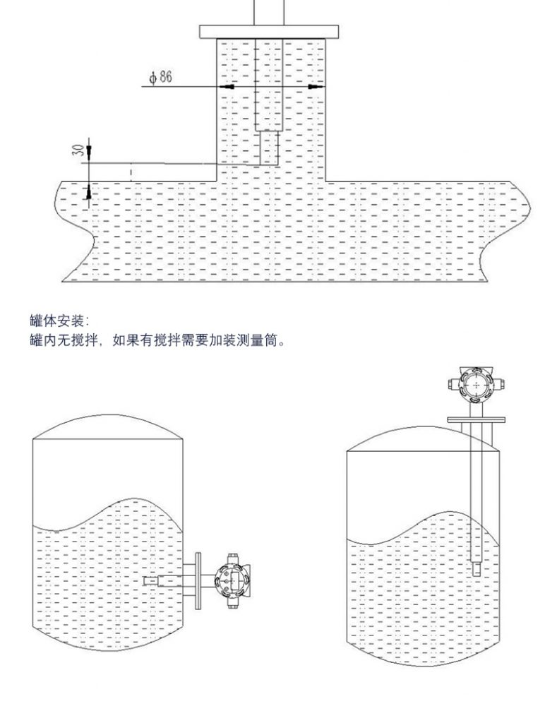 介質流向 自下(xià)而上或靜態測量