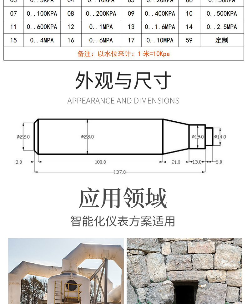 其(qí)良好的結構及安裝方式適(shì)用於高溫高壓、強腐蝕、易結晶、易(yì)堵塞(sāi)等惡劣條件下連續檢(jiǎn)測各種液體。適合測量汙水(shuǐ)、酸堿溶液、和鍋爐的水位,整機無任何可動或彈性部件,耐衝擊、安裝方便、可靠性高、精度高。可替代傳統的浮球式、投入式、差壓式等液位變送(sòng)器在各種場合下應用。